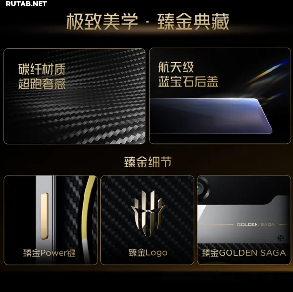 Модель Red Magic 11 Pro+ GOLDEN SAGA, представленная в октябре, отличается роскошным дизайном. Её корпус выполнен из карбона, аналогичного тому, что используется в суперкарах, а задняя панель сделана из сапфира аэрокосмического класса. Рамка устройства имеет зеркально-серебристую отделку.