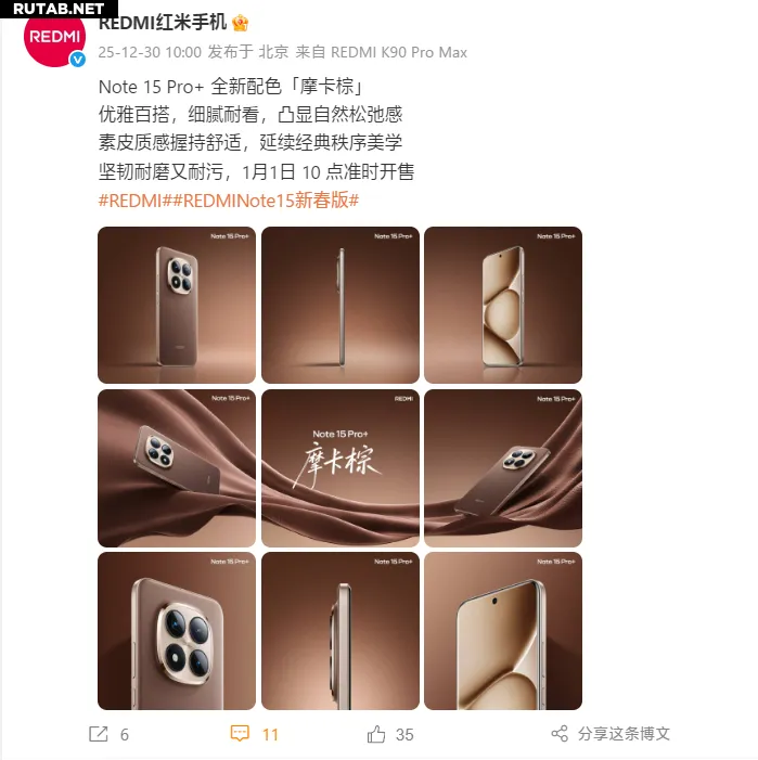 Redmi представила новогоднюю версию Note 15 Pro+ в цвете «Мокко Браун»