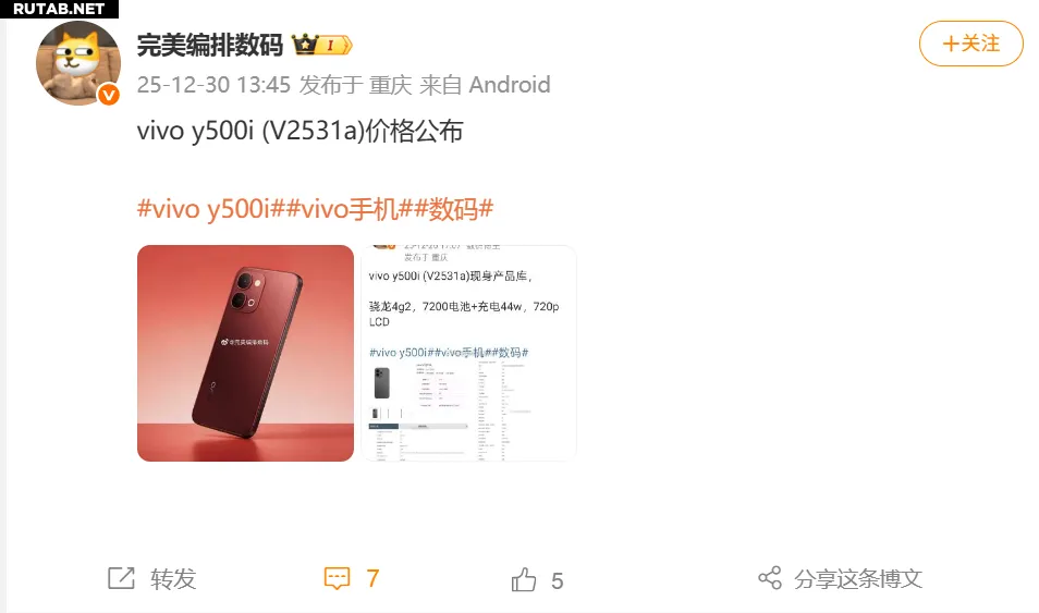 Vivo Y500i: бюджетный смартфон с огромной батареей 7200 мАч и 5G