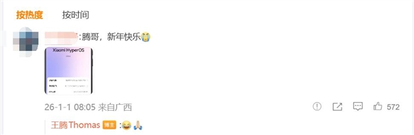 В комментариях один из поклонников Xiaomi («мифен») ответил: «С Новым годом, брат Тэн!». При этом он переименовал свой смартфон Redmi K80 Ultra в «Redmi K80 Ultra Мемориальная версия Ван Тэна». Сам Ван Тэн, увидев это, ответил двумя эмодзи: «плачу от смеха» и «молящиеся руки».