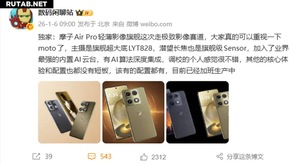 Сегодня компания Lenovo анонсировала дату выхода нового смартфона moto X70 Air Pro — 20 января.