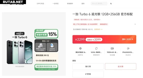 Сегодня, 9 января, в 10:00 по пекинскому времени (05:00 мск) стартовали продажи смартфона OnePlus Turbo 6. Стартовая цена модели составляет 2099 юаней (~25200 рублей), а с учётом государственных субсидий она снижается до 1784,15 юаней (~21400 рублей).