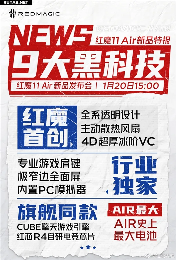 Аппаратной основой новинки станет флагманская платформа Qualcomm Snapdragon 8 Ultimate Edition. Устройство получит аккумулятор ёмкостью 7000 мАч при толщине корпуса всего 7,85 мм. Презентация Red Magic 11 Air запланирована на 20 января в 15:00 по пекинскому времени (10:00 по московскому времени).