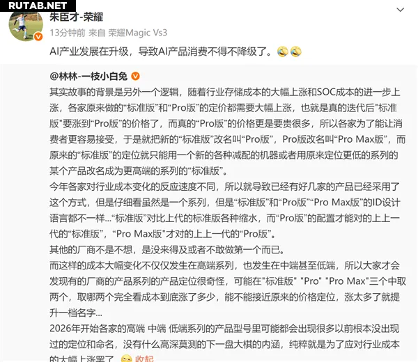 На этот вопрос ответил глава бизнеса умной жизни в Китае компании Honor, известный под ником @林林-一枝小白兔 (Линь Линь — Белый Кролик). По его словам, всё дело в вынужденном повышении цен.