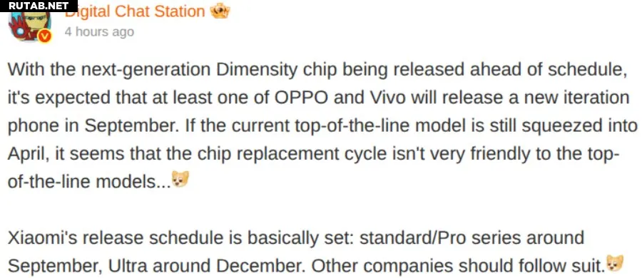 Напомним, что в 2025 году Qualcomm задала тренд, анонсировав Snapdragon 8 Elite Gen 5 в начале сентября, что позволило Xiaomi сразу же представить серию Xiaomi 17. MediaTek же выпустила Dimensity 9600 позже, и устройства на его основе, такие как Oppo Find X9 и Vivo X300, появились только в октябре.