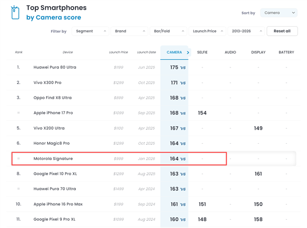 Этот результат превосходит показатели таких моделей, как Huawei Pura 70 Ultra (163 балла) и Xiaomi 15 Ultra (159 баллов). При этом moto X70 Air Pro является самым тонким и лёгким устройством в верхней части рейтинга.