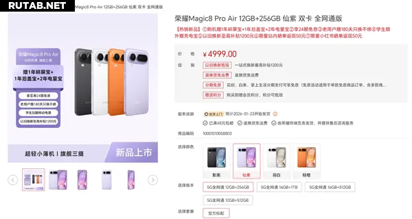 Официальные продажи Honor Magic8 Pro Air стартуют в Китае 23 января. Стартовая цена составляет 4999 юаней, однако с учётом государственной субсидии для покупателей устройство обойдётся в 4499 юаней.