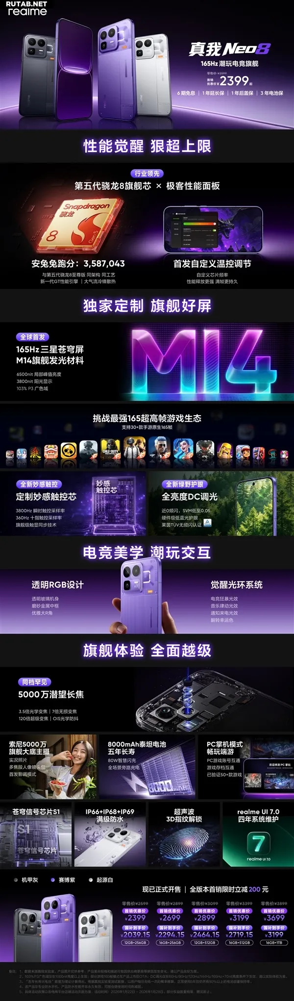 Сегодня состоялся официальный старт продаж смартфона Realme Neo8 по стартовой цене 2399 юаней. Благодаря государственным субсидиям конечная цена для покупателя снижается до 2039,15 юаней.
