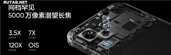 В части камеры аппарат получил лучший в своём классе 50-мегапиксельный перископический телеобъектив с 3,5-кратным оптическим, 7-кратным «без потерь» и до 120-кратным цифровым зумом. Благодаря оптимизации алгоритмов размытия фона он способен делать сверхчёткие портретные снимки «плакатного» качества.