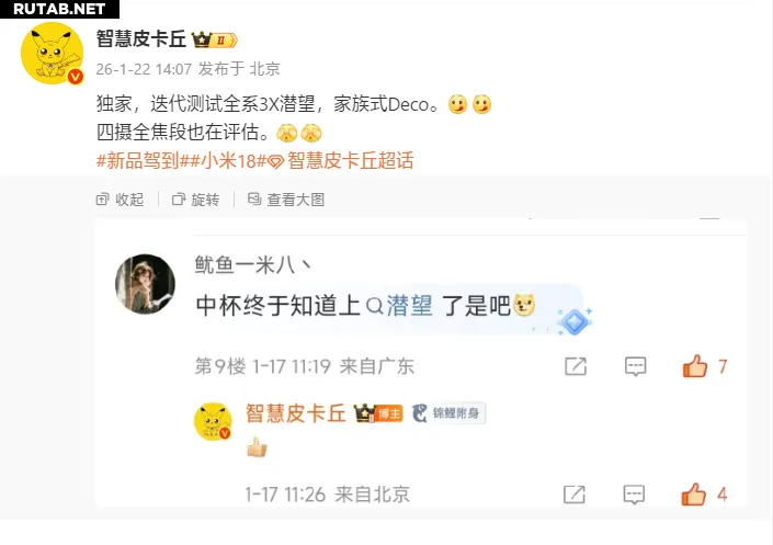 Согласно утечкам от инсайдера «智慧皮卡丘», серия смартфонов Xiaomi 18 будет оснащена 3-кратным перископическим телеобъективом на всех моделях, сохраняя при этом фирменный дизайн задней панели камер (Deco).