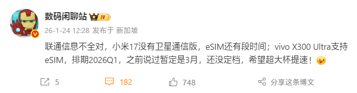 Инсайдер под ником Digital Chat Station подтвердил, что флагманский смартфон vivo X300 Ultra запланирован к выпуску в первом квартале 2026 года. Точная дата пока не определена, но есть вероятность, что релиз состоится раньше.