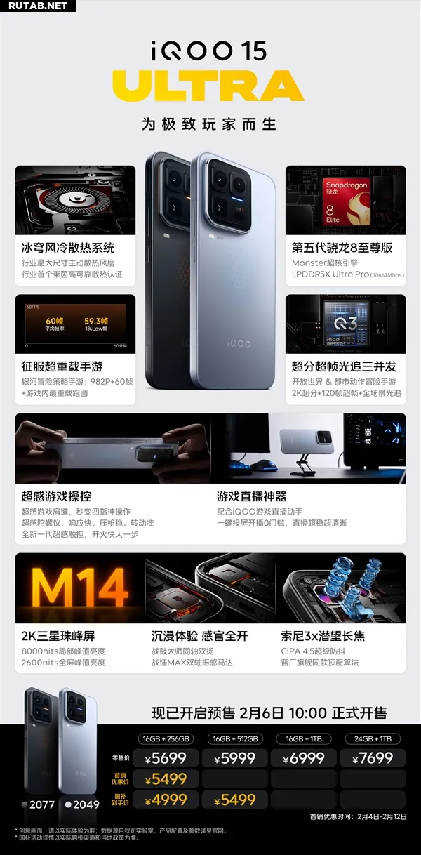 Вечером 4 февраля компания iQOO официально представила смартфон iQOO 15 Ultra. Стартовая цена новинки после государственных субсидий составляет 4999 юаней.