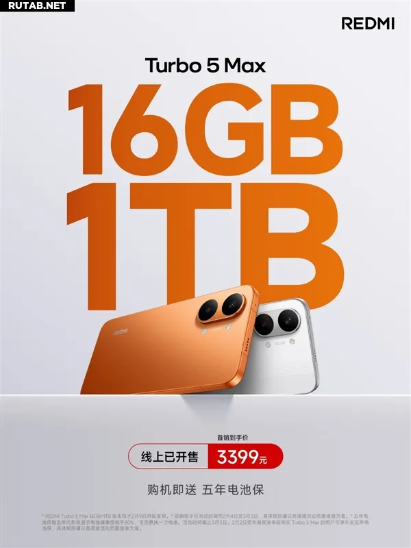 Президент Xiaomi Group Лу Вэйбин (Лу Вэйбин) объявил о начале продаж смартфона Redmi Turbo 5 Max в конфигурации 16 ГБ оперативной памяти и 1 ТБ встроенной памяти по цене 3399 юаней. По его словам, это «редкая и привлекательная цена» для устройства с таким объёмом памяти. Поставки начнутся на следующей неделе.