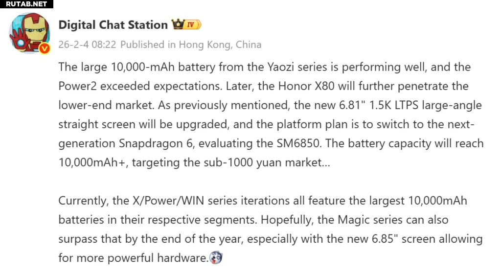 Новая утечка также утверждает, что Honor планирует стандартизировать аккумуляторы класса 10 000 мАч в линейках X, Power и WIN, сделав длительное время автономной работы ключевым преимуществом. Кроме того, следующее поколение серии Magic может получить значительное обновление позже в этом году, потенциально получив более крупный 6,85-дюймовый дисплей и более существенные аппаратные улучшения.