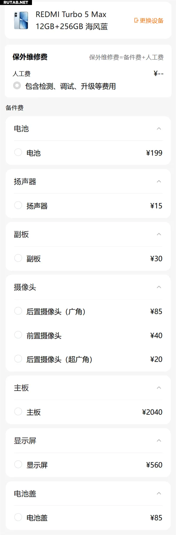 Опубликованы цены на ремонт REDMI Turbo 5 Max: самая большая батарея в истории Xiaomi стоит 199 юаней