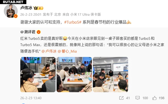 Партнёр Xiaomi Group Лу Вэйбин (Lu Weibing) заявил, что серия смартфонов Redmi Turbo 5 стала настоящим хитом продаж в индустрии во время празднования Китайского Нового года (Лунного Нового года).