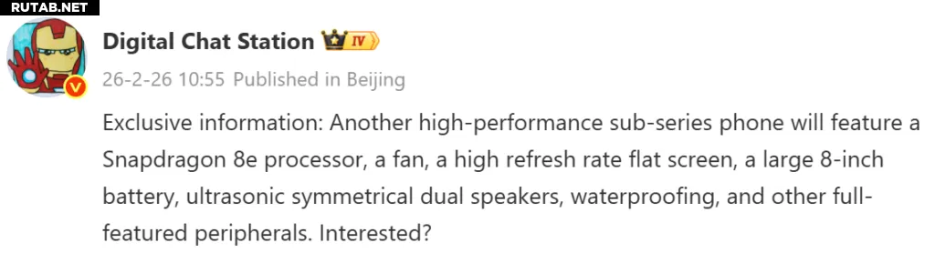 Согласно инсайдеру, новый смартфон Redmi будет работать на чипе Snapdragon 8 Elite. Наличие этого чипсета позволяет предположить, что устройство может принадлежать к линейке K90. Утечка также упоминает, что аппарат получит дисплей с высокой частотой обновления, большую батарею ёмкостью около 8000 мА·ч и встроенный кулер для улучшения стабильной производительности.