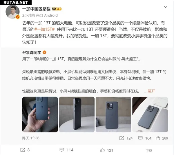 Он заявил, что прошлогодняя модель OnePlus 13T с её огромной батареей изменила представления рынка о времени автономной работы компактных смартфонов, а грядущий OnePlus 15T в реальном использовании окажется «ещё на голову выше» предшественника.
