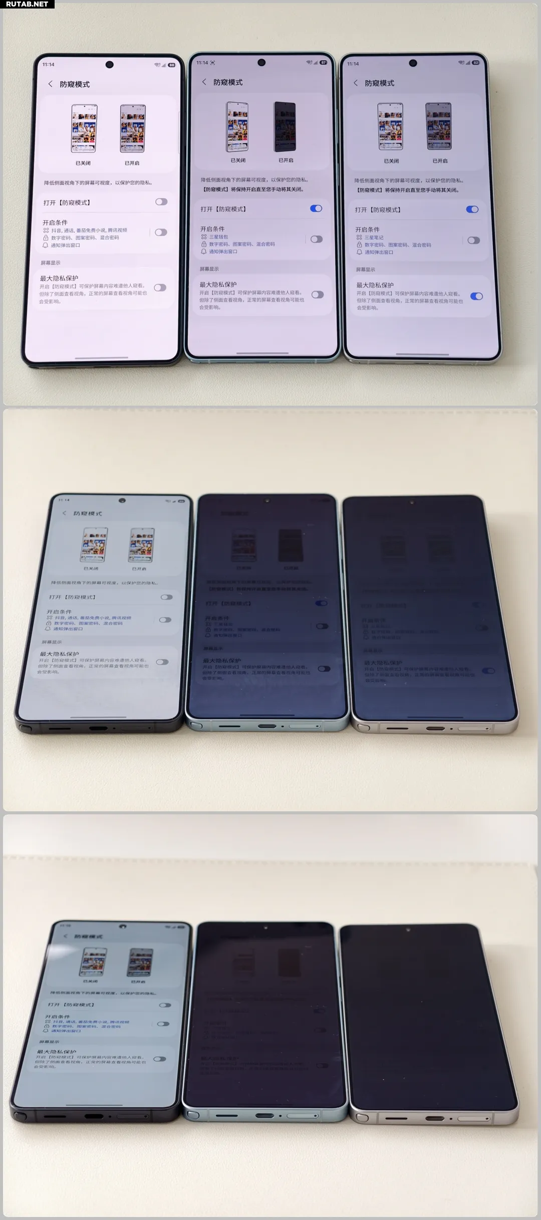 Во-первых, при активации этого режима экран со стороны выглядит так же, как с плёнкой, но защита работает эффективнее — блокируется обзор не только сбоку, но и сверху/снизу.