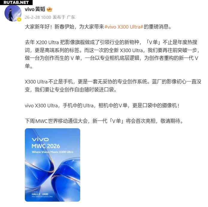 «В прошлом году X200 Ultra превратил флагманскую камеру в новый вид, ведущий отрасль. «V-камера» (V单) стала не только словом года, но и символом премиальной серии. А новый X300 Ultra сделает ещё один шаг вперёд. Мы создаём V-камеру для творчества, новое поколение V-камеры, переосмысленной для создателей контента на основе фундаментальной логики профессиональной фототехники».