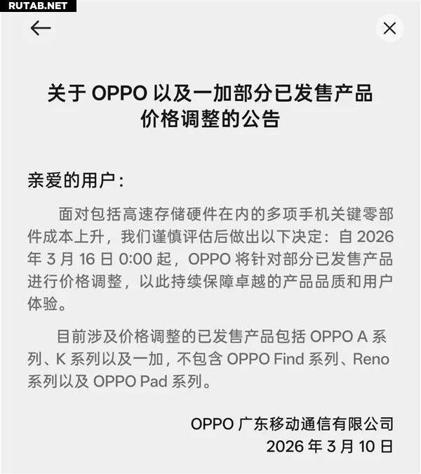 OPPO заявила, что, столкнувшись с постоянным ростом стоимости ключевых компонентов, включая высокоскоростные аппаратные средства хранения данных, компания после тщательной оценки решила скорректировать цены на некоторые уже выпущенные продукты с 16 марта 2026 года, чтобы и впредь гарантировать превосходное качество продукции и пользовательский опыт.