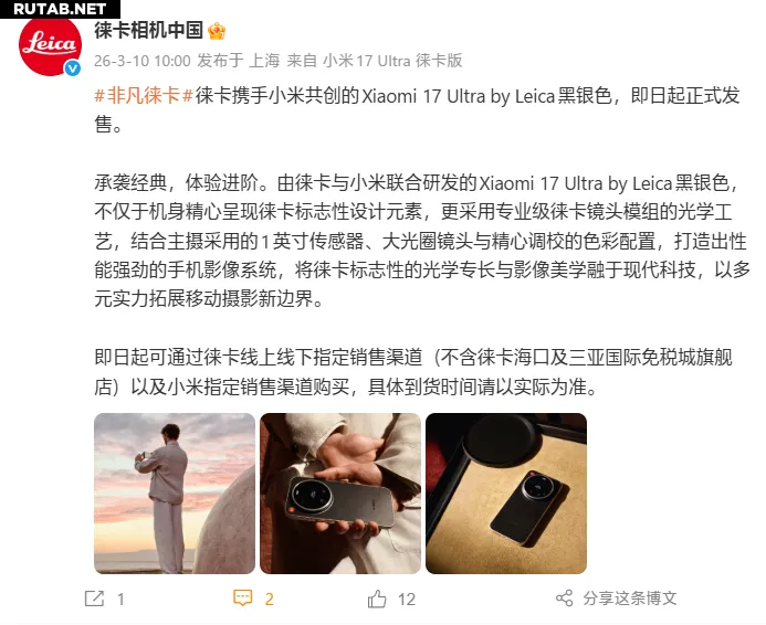 Сегодня, 10 марта, в продажу поступила новая чёрно-серебристая версия флагманского смартфона Xiaomi 17 Ultra Leica Edition. Устройство стартует с цены в 7999 юаней.