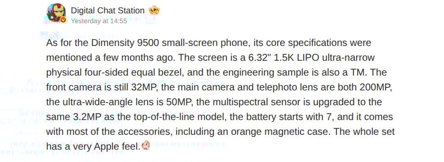 Сердцем устройства станет чипсет MediaTek Dimensity 9500. Что касается камер, утечка предполагает, что Find X9s Pro может включать два отдельных 200-мегапиксельных сенсора.