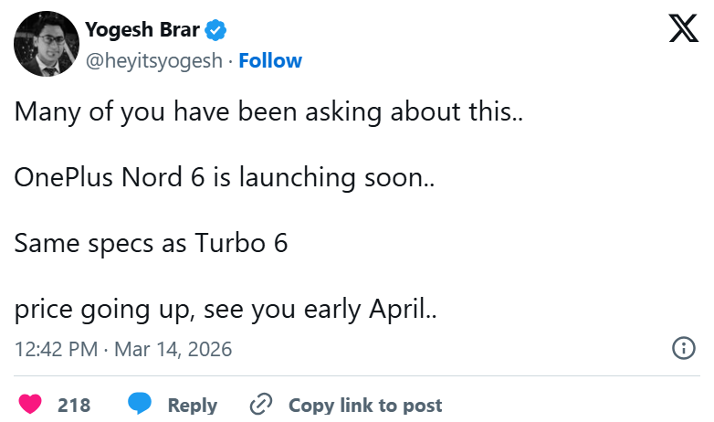 Утечка также намекает, что OnePlus Nord 6 может быть запущен по более высокой цене, чем Nord 5. Хотя официальные расценки не подтверждены, обновлённый чипсет и игровые функции могут оправдать увеличение стоимости.