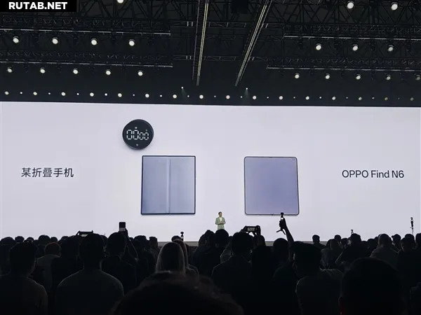 На презентации показали сравнительный ролик, в котором у только что распакованного складного смартфона конкурента уже через час простоя появилась заметная физическая складка. В тех же тестовых условиях экран OPPO Find N6 оставался гладким, а складка была практически невидима.