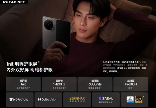 Главной особенностью устройства является его экранная система. Внешний дисплей имеет диагональ 6,62 дюйма, а внутренний, в разложенном состоянии, — 8,12 дюйма. Производитель заявляет, что это лучший в отрасли внутренний экран. Оба дисплея поддерживают технологию защиты зрения с минимальной яркостью в 1 нит и имеют золотой сертификат TÜV Rheinland.