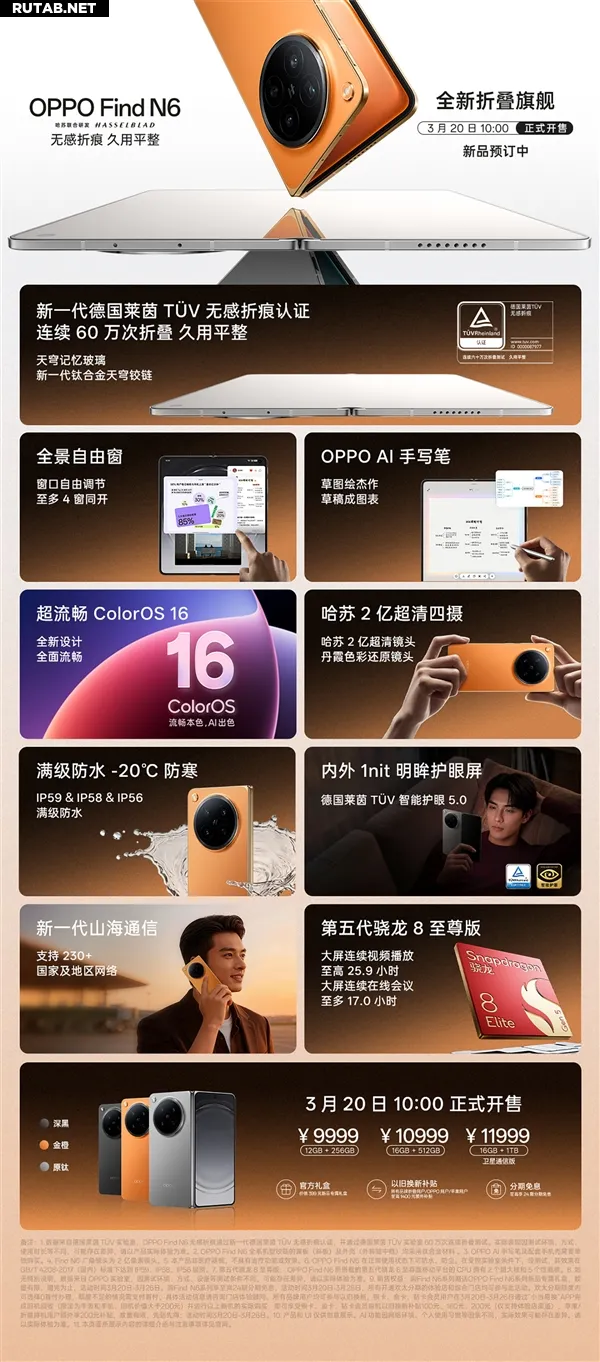 Сегодня, 20 марта, в 10:00 по пекинскому времени (05:00 мск) стартовали продажи нового складного флагмана OPPO Find N6. Стоимость новинки начинается от 9999 юаней (~120 000 рублей).