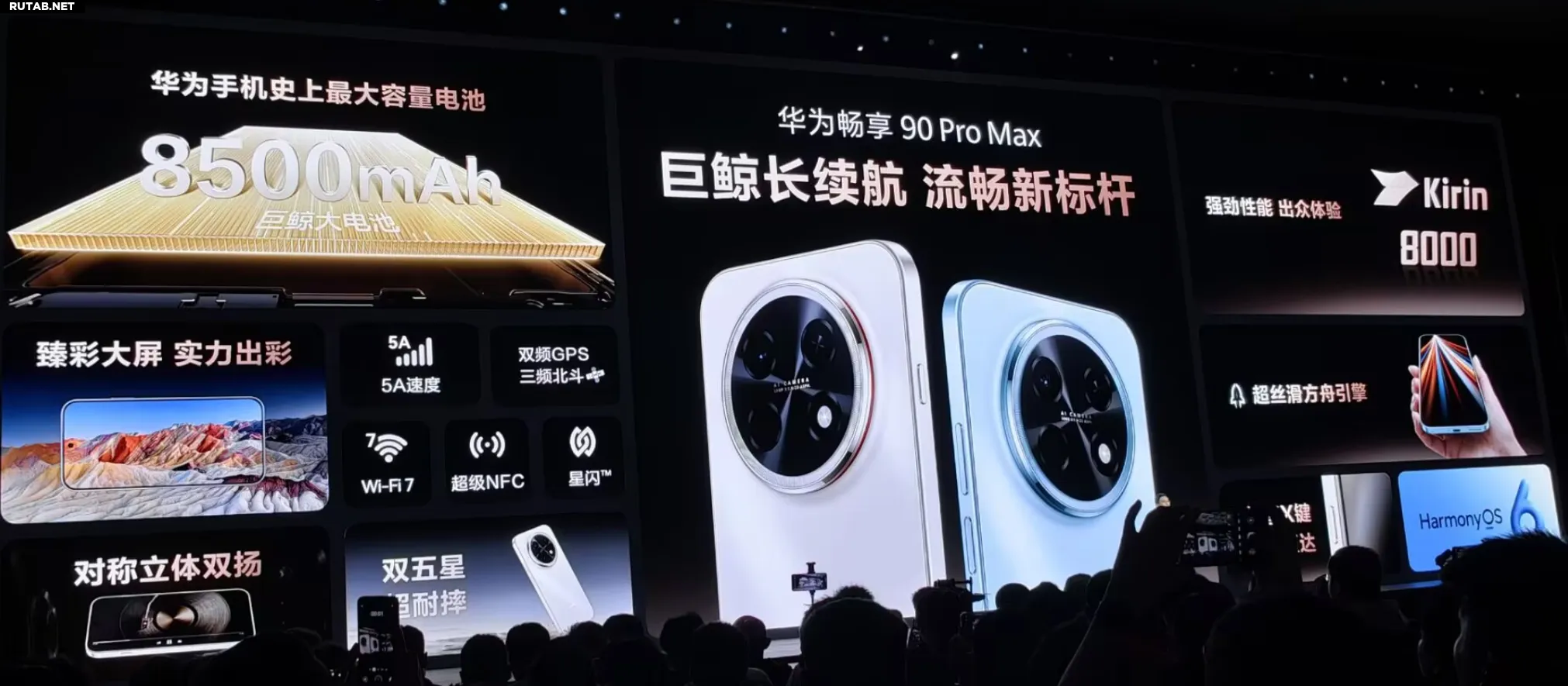 Главной особенностью новинки является аккумулятор рекордной для Huawei ёмкости — 8500 мАч. В нём используется технология Super Energy Pump, которая, по утверждению производителя, увеличивает полезную ёмкость на 10%, а коэффициент высвобождения заряда превышает 98%. Дополнительные оптимизации, такие как ИИ-планирование работы чипов и интеллектуальное управление частотой обновления, повышают среднюю энергоэффективность на 12%. В результате смартфон способен обеспечить до 48 часов разговора, 28 часов просмотра онлайн-видео или 83 часа прослушивания аудиокниг.