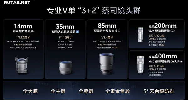 Отдельного внимания заслуживают два новых телеконвертера (удлинителя фокусного расстояния), представленных vivo. Телеконвертер Zeiss G2 обеспечивает эквивалентное фокусное расстояние 200 мм и поддерживает стабилизацию уровня CIPA 6.5. Другая модель, G2 Ultra, впервые в отрасли использует асферические линзы, увеличивая эквивалентное фокусное расстояние до 400 мм, что ещё больше расширяет возможности съёмки удалённых объектов.