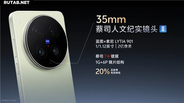 В основе камеры лежит 35-мм основной сенсор Zeiss с разрешением 200 Мп. Vivo X300 Ultra станет первым в мире смартфоном, использующим новый сенсор Blueprint x Sony LYTIA-901. Он обладает сверхбольшой диагональю 1/1.12 дюйма. Площадь светочувствительности отдельного пикселя увеличена на 30%, а полная ёмкость потенциальной ямы (FWC) — на 32%, что значительно усиливает способность захвата света и улучшает качество изображения.