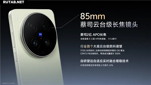 Что касается телеобъектива, то vivo X300 Ultra оснащён 85-мм телеобъективом Zeiss с гироскопической стабилизацией. В нём используется 200-мегапиксельная APO-схема с сенсором Samsung HP0. Объектив поддерживает физическую стабилизацию на 3° и соответствует профессиональному уровню стабилизации CIPA 7.0. Эквивалентное количество захватываемого света увеличено на 300%.