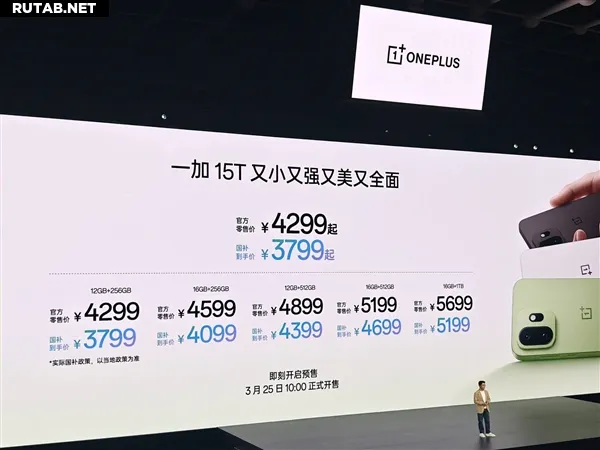 Цены на OnePlus 15T в Китае начинаются от 3799 юаней (после государственной субсидии). Стартовая версия с 12 ГБ ОЗУ и 256 ГБ памяти стоит 4299 юаней, а топовая конфигурация 16 ГБ + 1 ТБ оценивается в 5699 юаней.