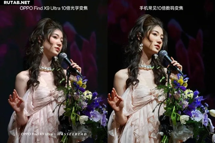 Чтобы наглядно продемонстрировать возможности нативного 10-кратного оптического зума, руководитель линейки продуктов Find OPPO Чжо Шицзе (Zhuo Shijie) опубликовал в тот же день два поста в Weibo с тестами. В первом, с помощью видео, он сравнил качество изображения нативного 10-кратного зума Find X9 Ultra с 10-кратным зумом обычных смартфонов, наглядно показав разницу. Затем он выложил сравнительные снимки со сцены концерта, сопоставив нативный 10-кратный зум Find X9 Ultra с комбинацией «обычный флагманский смартфон + 10-кратный телеконвертер». Результаты показали, что качество изображения у двух подходов практически идентично, что подтверждает технологический прорыв OPPO по «упаковке» телеконвертера в тонкий корпус.