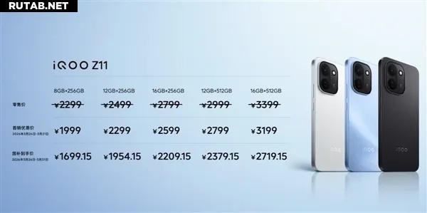 Цены на iQOO Z11 в Китае начинаются от 1999 юаней за версию 8/256 ГБ. Модель на 12/256 ГБ стоит 2299 юаней, на 16/256 ГБ — 2599 юаней, на 12/512 ГБ — 2799 юаней, а топовая версия 16/512 ГБ оценивается в 3199 юаней. С учётом государственных субсидий стартовая цена может снижаться до 1699,15 юаней.