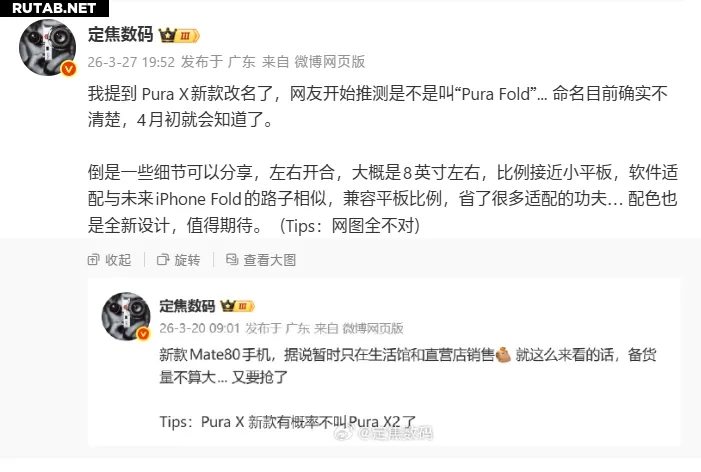 Согласно сообщению блогера Dingjiao Digital, новая модель Huawei Pura X, выход которой ожидается в следующем месяце, будет переименована. Точное новое название пока не подтверждено, но известно, что устройство больше не будет называться Pura X2.