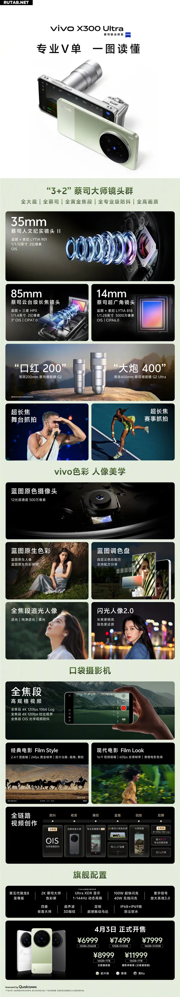Компания vivo официально представила на весеннем мероприятии свой новый флагманский смартфон X300 Ultra, позиционируемый как «профессиональная зеркальная камера в кармане». Стартовая цена новинки составляет 6999 юаней.