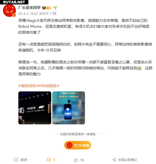 Напомним, на MWC 2026 Honor и мировой бренд профессионального кинооборудования Arri объявили о начале стратегического технического сотрудничества.