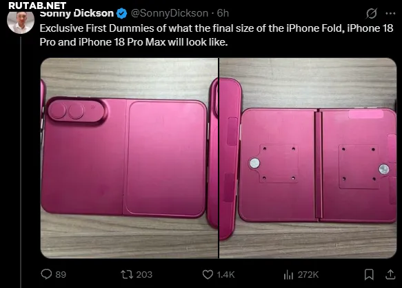 Сегодня инсайдер Sonny Dickson опубликовал фотографии макетов будущих смартфонов Apple — iPhone 18 Pro и iPhone 18 Pro Max, а также первого складного iPhone Fold.