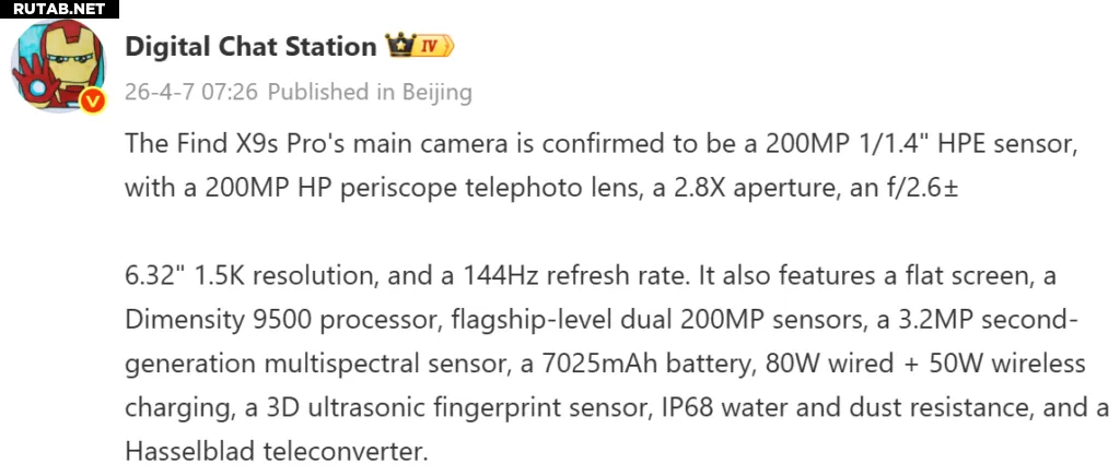 На прошлой неделе Oppo подтвердила, что смартфон Oppo Find X9s Pro, запуск которого в Китае запланирован на 21 апреля, будет оснащён двойными 200-мегапиксельными камерами. В сети ходили слухи, что в аппарате могут использоваться два сенсора Samsung HP5, которые ранее применялись в некоторых флагманах и даже среднебюджетных телефонах. Однако новый пост на Weibo от надёжного инсайдера Digital Chat Station раскрыл точные модели сенсоров, которые будут работать в двойной 200-мегапиксельной системе X9s Pro.