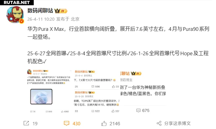Huawei представит первую в отрасли горизонтально раскладывающуюся складную модель Pura X Max 20 апреля