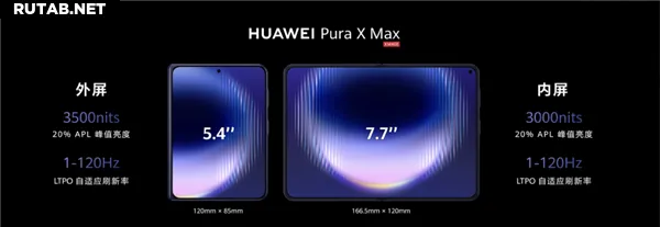 Дизайн устройства вдохновлён листом бумаги формата А4, что, по заявлению производителя, обеспечивает высокую визуальную целостность. Huawei Pura X Max оснащён 5.4-дюймовым внешним экраном с пиковой яркостью до 3500 нит и 7.7-дюймовым внутренним экраном с яркостью до 3000 нит. Оба дисплея поддерживают адаптивную частоту обновления от 1 до 120 Гц.