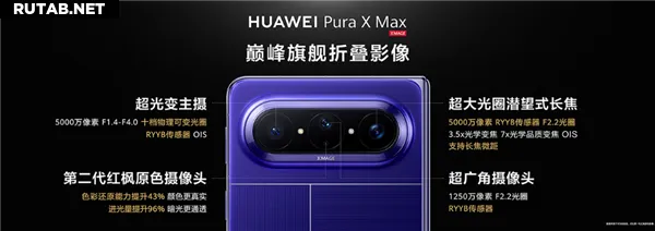 Что касается камер, то Huawei Pura X Max получил модуль в керамическом оформлении (Deco). В него встроены 50-мегапиксельная основная камера с переменной апертурой, 50-мегапиксельный перископический телеобъектив с большой апертурой и 12.5-мегапиксельный сверхширокоугольный объектив.