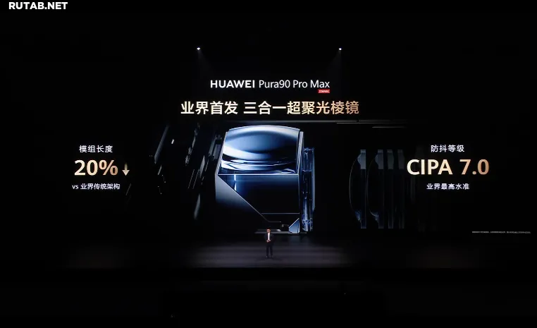 Модуль телеобъектива использует впервые представленную в отрасли трёхкомпонентную суперсветособирающую призму. Она позволяет достичь уровня стабилизации CIPA 7.0 (высший на рынке показатель), при этом длина модуля сокращена на 20% по сравнению с традиционными конструкциями.