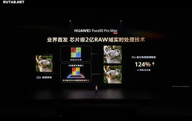 Кроме того, Huawei Pura 90 Pro Max первой получила чиповую технологию обработки 200-мегапиксельного RAW-сигнала в реальном времени, обладающую 4-кратной способностью сбора пикселей. При записи видео с 20-кратным зумом чёткость сверхдлиннофокусного видео на 124% выше, чем у других решений с 200-мегапиксельным телеобъективом.