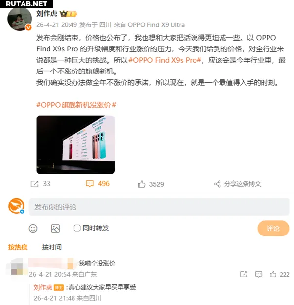 Он прямо заявил: «OPPO Find X9s Pro, вероятно, станет последним новым флагманским смартфоном в этом году, который не подорожал».