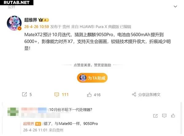 Это最强三折叠!华为Mate XT2首发全新麒麟Soc